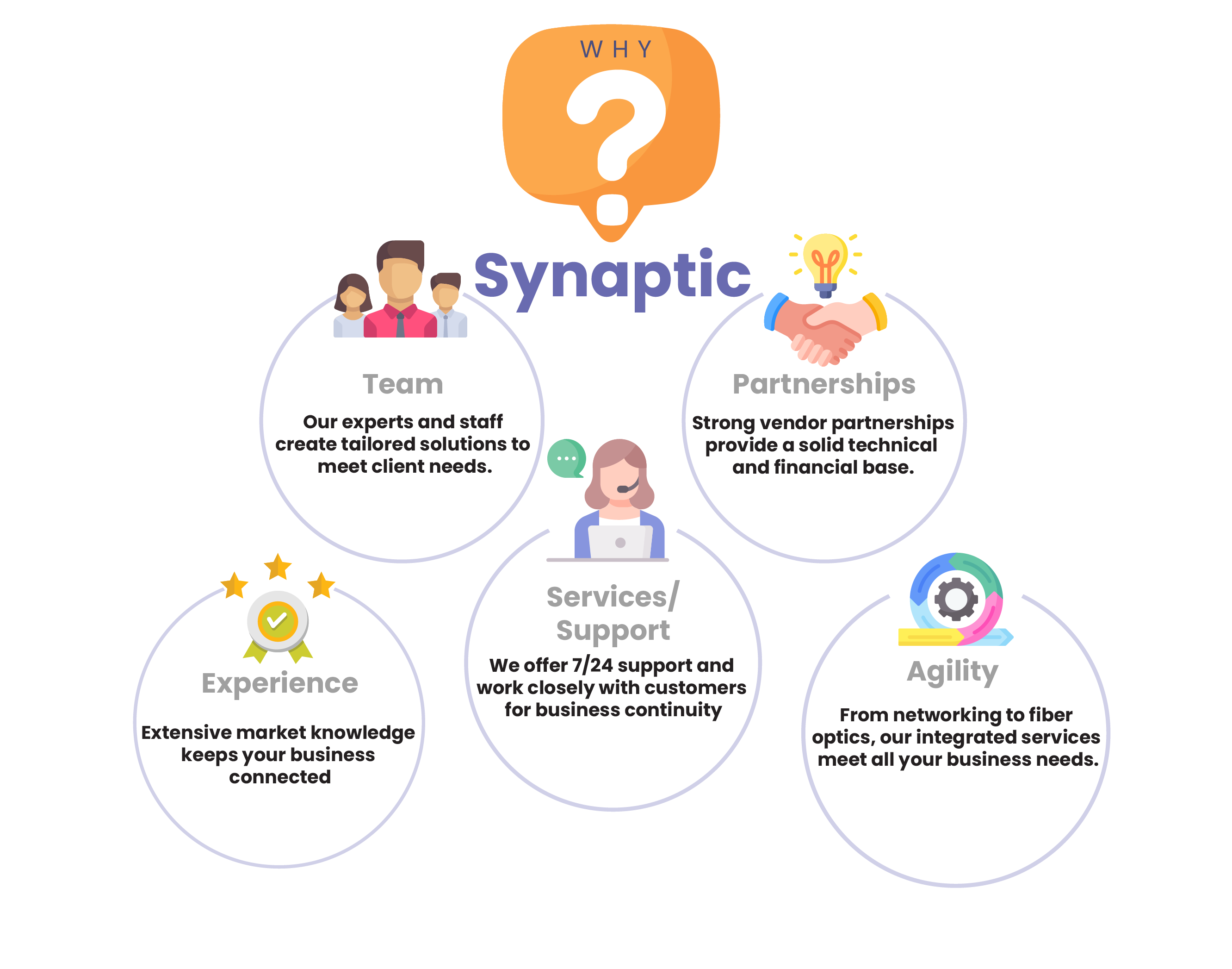 At Synaptic, we believe that technology is only as powerful as the people behind it. Our approach combines the ingenuity, creativity, and expertise of our team with cutting-edge innovations to deliver solutions that truly make a difference. While we leverage advanced technologies like AI, networking, and cybersecurity, it’s the human touch, our passion, dedication, and understanding of unique client needs that drive success. Every system we design, and every solution we deliver, is powered by the belief that technology serves its greatest purpose when guided by human vision, empathy, and purpose. At Synaptic, it’s not just about technology, it’s about empowering people.